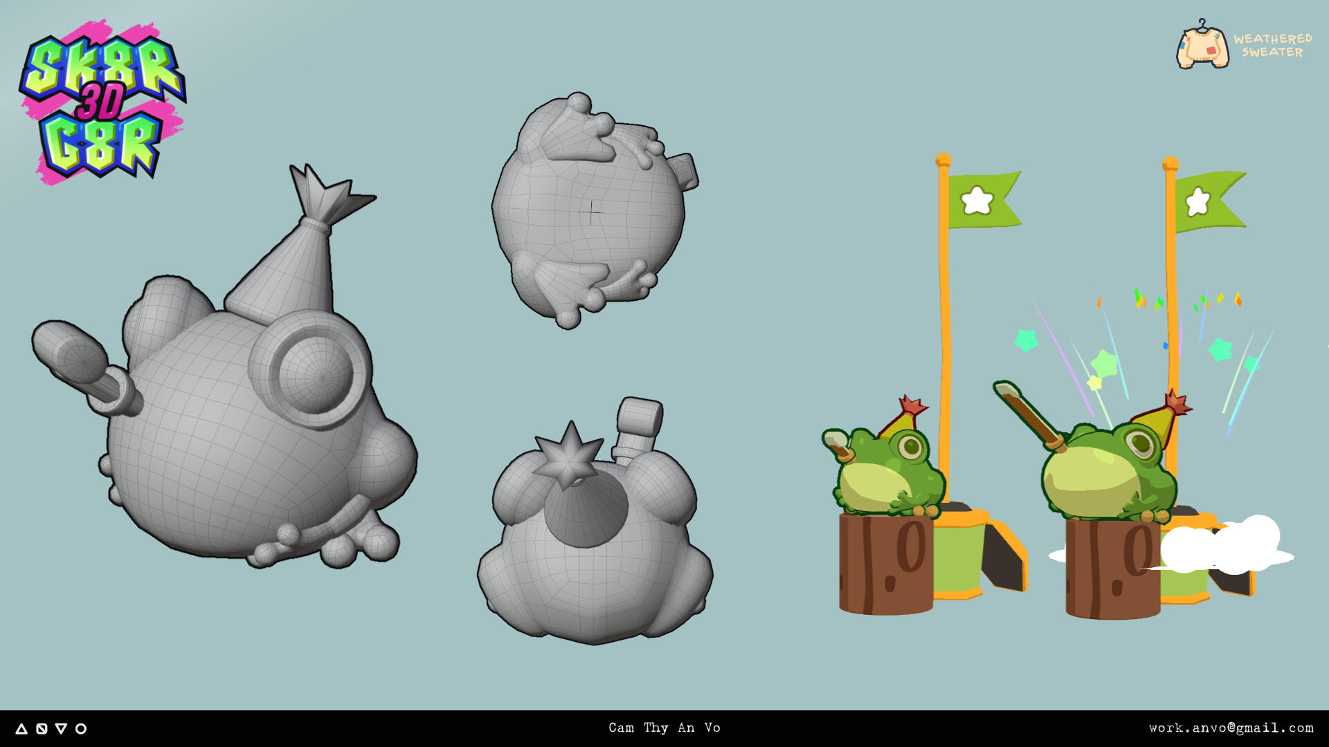 Hi, I'm An! I love to make colorful and playful art for games. My work ranges from 2D to 3D, from conception to implementing final game assets and (occasionally) shaders!
